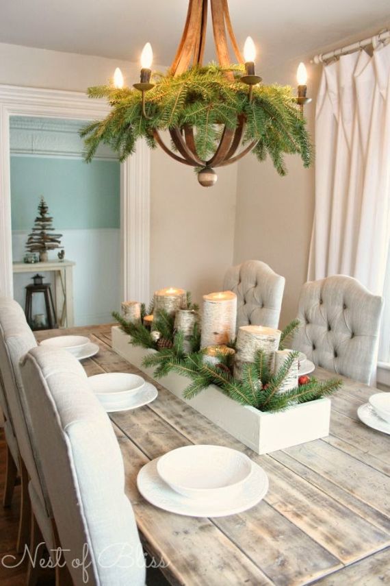 Bring the outdoor of the rustic mood of wood and nature inside for an inviting table that gives a more relaxed vibe. Forgo the tablecloth and make a virtue of wooden surfaces to make your house more down-to-earth. Decorate the table with earthy, unsophisticated with accessories like linen napkins and lush foliage. Create a classic rural centerpiece in the middle of the table and a mix of pillar candles.