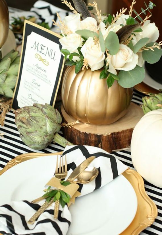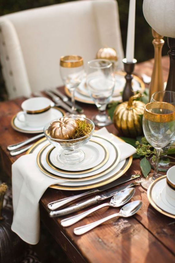 Gold is a rather traditional color for Thanksgiving as well as a modern color too. It is chic and classic spread a shiny touch to any tablescape and space. There are so many ideas to incorporate with gold and can be added into your Thanksgiving decor. Gold is suitable for many styles and elegant ways to rock gold touches .