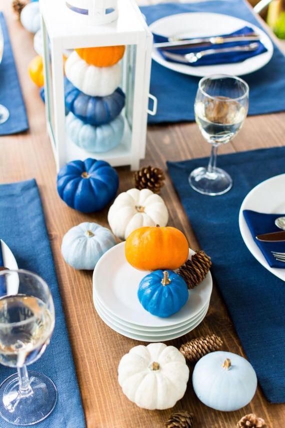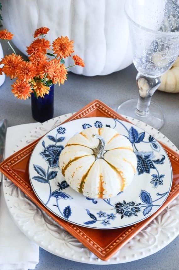 On the color wheel, orange and blue are positioned exactly opposite each other for a reason—they’re perfect complements. The two Hues have the highest contrast. These highest contrast colors going with a blue and orange encompass aspects of the season for a brighter take on traditional fall decor.