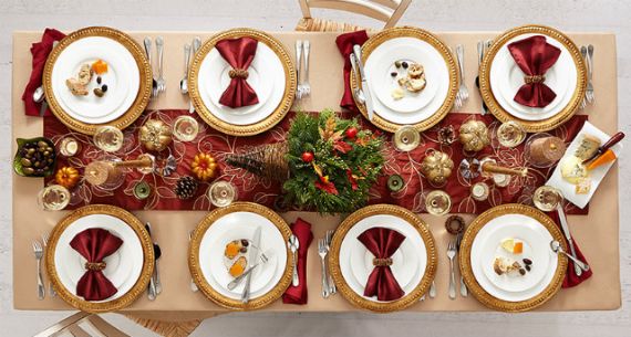 This is one of so many ways to set the Thanksgiving table in style characterized by Red and Regal lively color. Bring royalty to your table by pairing red and light pink flowers with a set of Victorian England Style dishes.