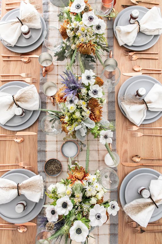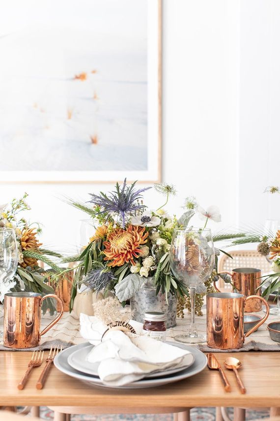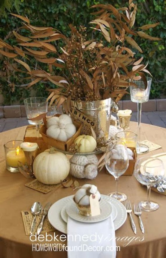 Grey is a smart choice for just about any season, it is much like white, a neutral alternative to other colors, you can never go wrong with it. Grey offers a more variety to choose your theme from rustic or modern Thanksgiving table setting with a warm and glow touches of modern elements. Make more of an impact in your Thanksgiving table decor.