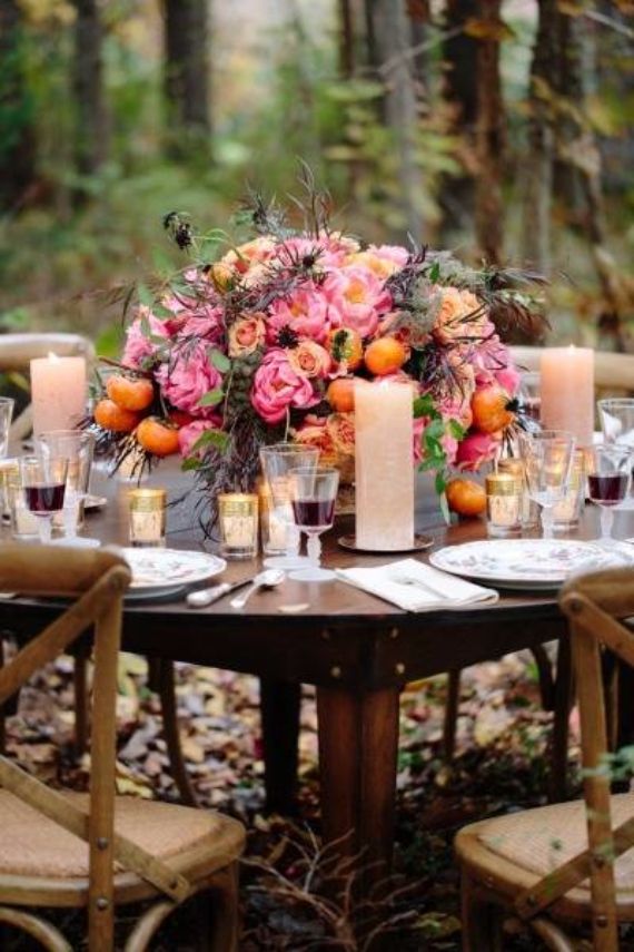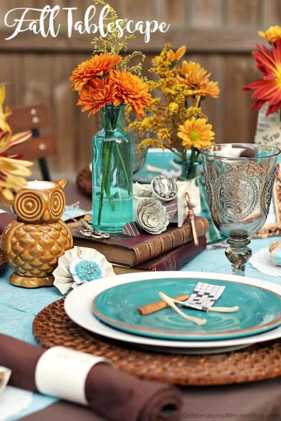 Jewel-tones are big fashion trends these days, it creates a warm and festive tablescape for the sweetest occasion. The combination of the deep purple hue and emerald or teal, fuchsia, hot pink, navy, violet, orange, burgundy colors next to the beautiful greens add drama and personality to any Thanksgiving Table Setting. Instantly you can choose one or two tones to set the mood of the perfect Thanksgiving centerpiece. Simply by draping the items in the center of your dining table, just like a table runner or centerpiece, and placing your napkins, chargers and plates, glasses and candle holders.