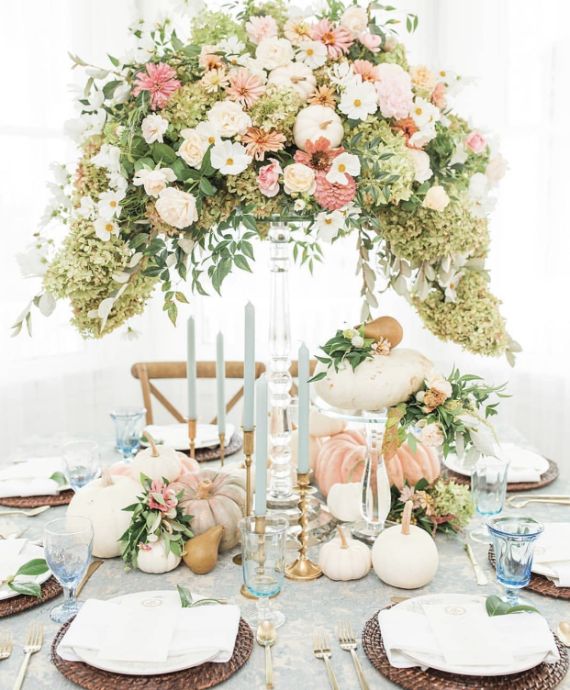 Thanksgiving is celebrated with warm fall colors without being too dark as well as pumpkins and flowers; but everything will depend on the style to create a beautiful table setting .