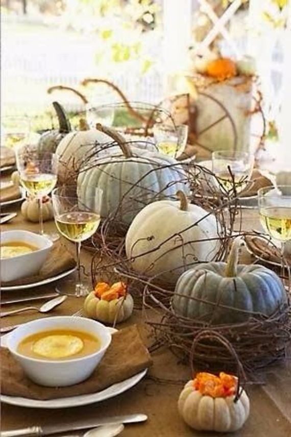 Nature is the best decoration for any occasion, but Thanksgiving is a that holiday connected with nature very tightly. Natural Thanksgiving decoration style is soft, ecological, cozy and light-filled environments are achieved.The combination of natural colors along with wooden serving pieces and earth tones create a welcoming setting that are very common in this type of decoration. Add natural pumpkins, berries, and greenery are some amazing ideas for you.