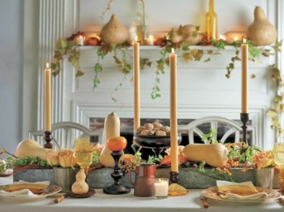 For this year’s fall and Thanksgiving setting, create your own homemade thanksgiving decorations starting with some perfect pieces you already have like pumpkins, apples, leaves and candles with all the glories color that can be dressed up for any occasional create beauty of fall-inspired centerpieces. Combine old with new, traditional with modern to use when decorating your home.