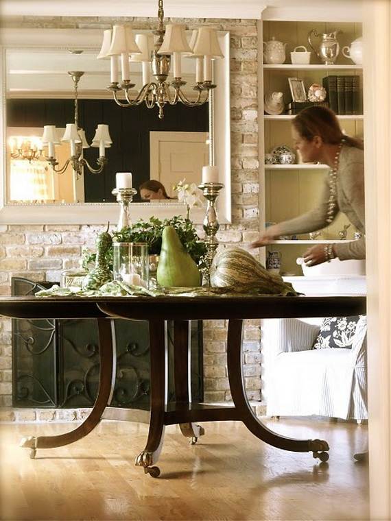 Seasonal fall fruits bring the feel of fall color and texture into your autumn kitchen decorating ideas and kitchen centerpiece. Use fresh and crisp fall edible fruits as a centerpiece like pears, plums, apples, and figs. They are perfect because you can use what you already have to make great arrangements on your kitchen table or countertops. Create a fall kitchen centerpiece by arranging some seasonal fall fruits in a bowl, crate or plate and place it on your table to bring in the feeling of the season into your kitchen decoration.