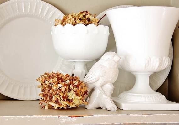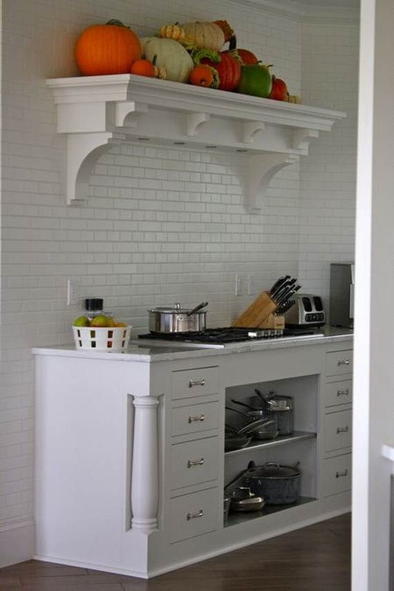 Autumn is known for falling leaves in vibrant colors, this drastic changing can clearly be displayed for your kitchen decorating ideas or as centerpieces around you to add a soft touch of elegance and femininity. Use white or pastel beautiful hand painted pumpkins and fall fruits with coordinating florals like roses or hydrangeas to display in your kitchen lending an unexpected touch of softness. These easy Thanksgiving centerpieces come together quickly and easily and inexpensively to arrange a fall- modern kitchen themes bouquet to use as a season’s décor.