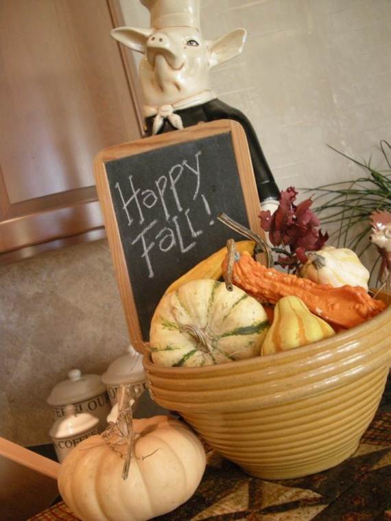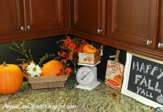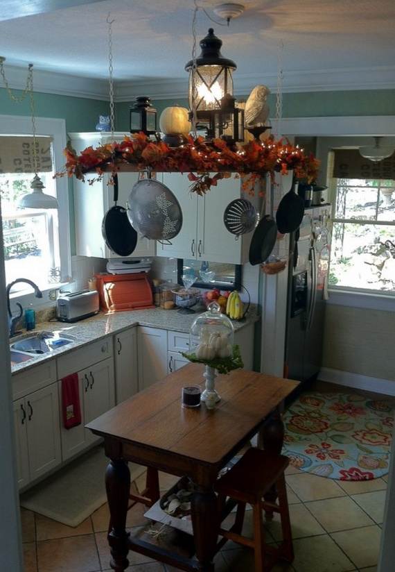 Fall introduces a lot of earth-friendly tones, and these tones can be used to easily add coziness to your kitchen decoration that is starting to cool down. Unique kitchen decorating themes are mainly created by the classic fall colors of pumpkins. Pumpkins in a traditional warm tone colors when paired with complimentary ones like burnt orange, chocolate brown, olive green, amber, tan, beige and mustard yellow cozies up a normally cool kitchen as they are all fall-appropriate colors.