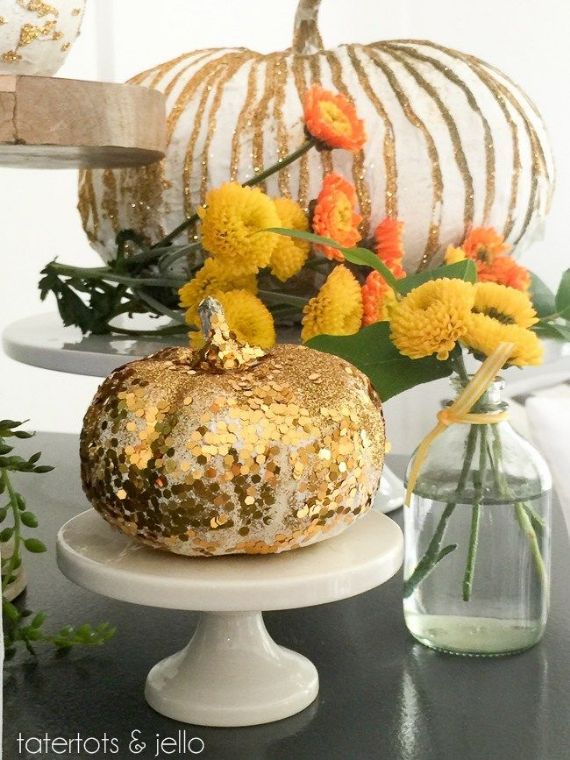 Everything is better with glitter; sparkled pumpkins add touch of flash to your autumn kitchen decoration. Whichever design you choose, your sparkled pumpkin ideas are truly the star of your kitchen table.