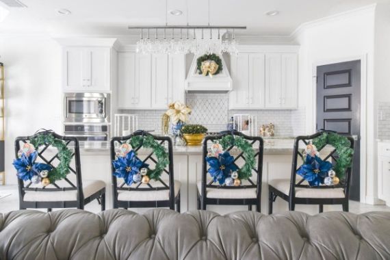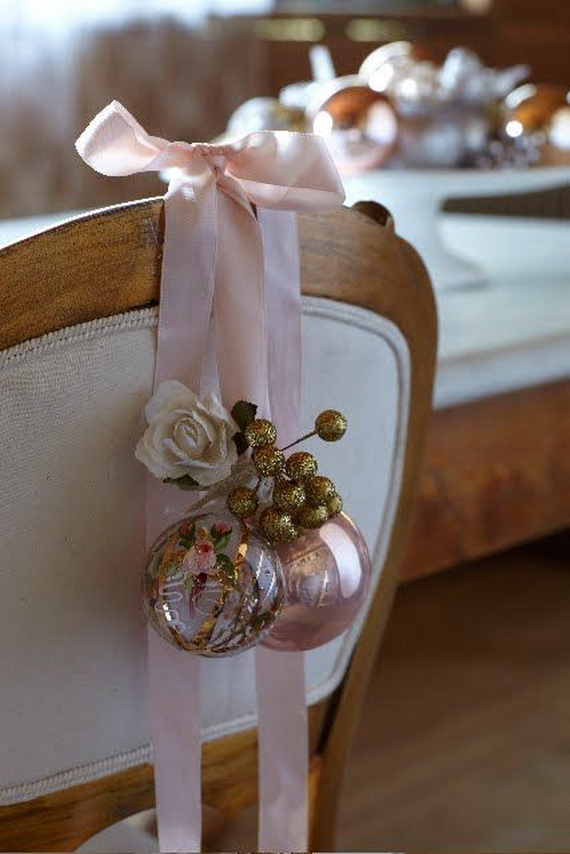 Use ornaments to add a festive touch to unexpected places in your home. Place your favorite to decorate your chairs. Invite your chairs to the party by hanging your favorite ornaments on the back.