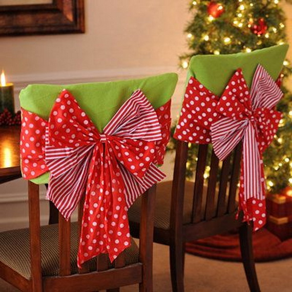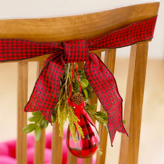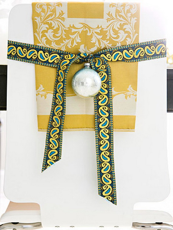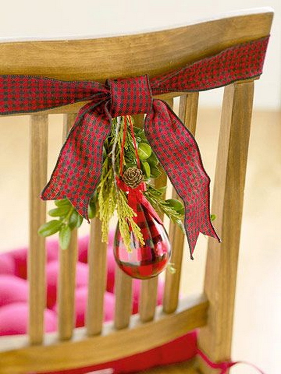 Check out chair decorating ideas, we gathered for you and add some festive touch to them and get ready for the feast season. They are very simple ideas…adding some shiny bands make you enjoy the Christmas day. You can add some festive touch with the use of some of our older posts Quick and easy Christmas décor ideas for a great holiday cheer and A Double-Duty Holiday Decor Ideas that Lasts Thanksgiving to Christmas.