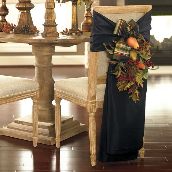 If you think beyond the table centerpiece; deck your home let it be combined with each other, not forgetting about harmonious combinations in color and style. Give them festive makeover with easy festive touches and inspiring ideas. Try these ideas from cute and whimsical for decorating your dining chairs easy to make but with a special place to sit this year. Play serious role in any holiday season …Thanksgiving, Christmas, and New Year’s.