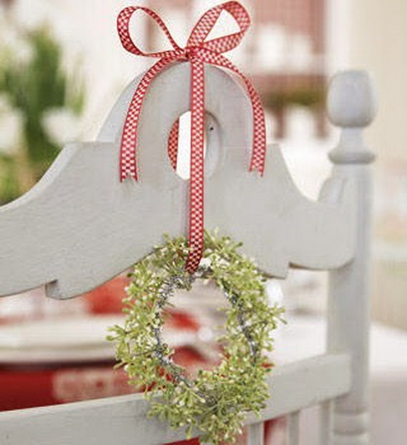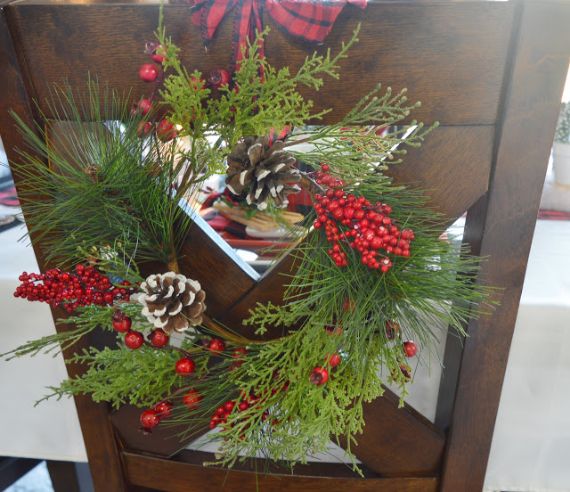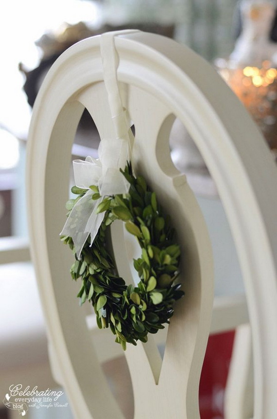 And if you happen to be a flower lover… Use the branches and the natural flowers wreaths decor on the chair back because of their cheerful colors channels the Christmas spirit. You can make a wreath with whatever foliage or flowers you fancy so you’ll instantly feel more at home and relaxed.
