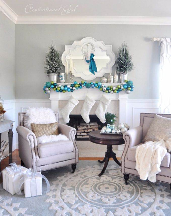 The blue stockings and/or blue garland hung hanged from the mantle are awesome idea. Add blue colored ribbon, Mesh Ribbon and Garlands… That will be the most gorgeous mantle the eye can enjoy. Don’t forget to try a sophisticated simplicity of the fresh and icy blue Christmas color scheme in some unsuspecting ways as well.