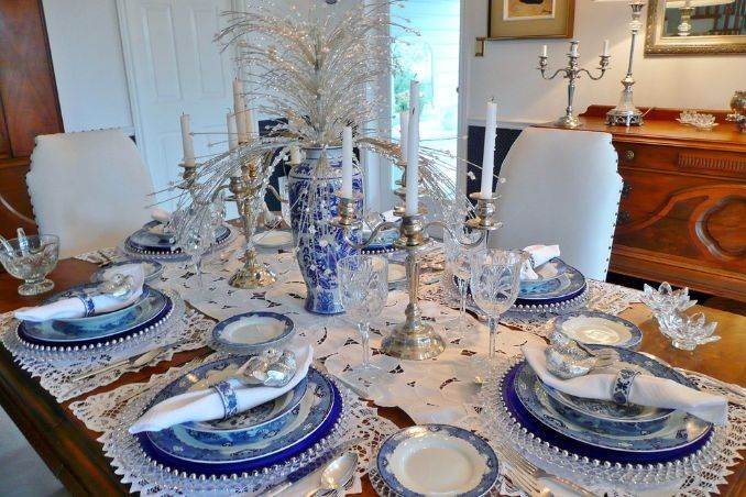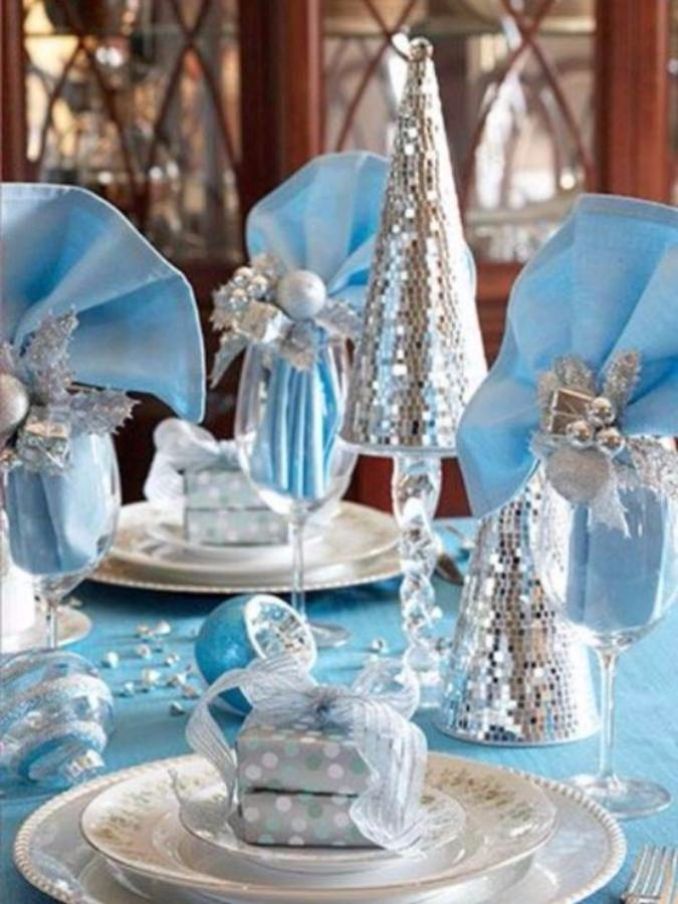 Christmas dinner is one of the most important meals of the year after thanksgiving, it is as important as the food itself. For this lovely occasion I would like to share some ideas for decorating, for the coming Christmas. After all it is a special holiday awaited for so long to have a festive gathering with all family members and also with our best friends. A well decorated home on a Christmas Eve helps spending splendid time together enjoy in the dinner and enjoying one another’s company because it is supposed to be festive holiday. On this enjoy something fresh and modern as deep blues and soft whispers of blue can play a major role in the design of a Christmas room and more over to have a fresh appearance for the occasion. Blue with the gold or white dining table set will match the Christmas spirit and theme. Blue at Christmas hits put in the spotlight in a mix with elegance and glamour as well. This will help you to prepare something special for the Christmas dinner. The images below would be helping to have a little twist for different decorative element when used to match your décor. Add some colors to achieve an impressive festive table decoration using Christmas balls and candles with sparticular napkin rings beside a beautiful centerpiece to decorate the table. A blue place Christmas card is beautiful additions to the table setting for a unique and memorable entertainment. A corresponding centerpiece colored with the blue theme will add a magical atmosphere at your table onto the middle of the table this turns it into a spectacular festive one.