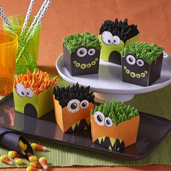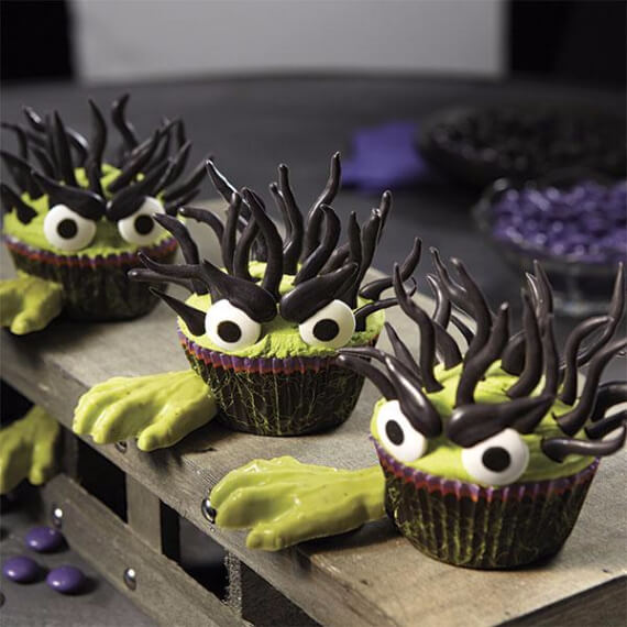 Have fun This Halloween get creative with these simple ideas for decorating Halloween cupcakes! OR get inspired with other Halloween cupcakes using some of our past articles 45 Fabulous Fall Cakes and Cupcakes Decorating Ideas for Halloween and Best Creative Decorating Ideas for Halloween Cupcakes to help get you started. We are presenting some of the best spooky, creepy and crawly cupcake designs and ideas to dazzle your Halloween party guests from around the web. These adorable Halloween cupcake monsters, ghosts, spiders black cats, witches, and ghosts designs are sure to scare off the Halloween spirits from your party table! Your kids will be cheerful helping you create the wonderfully ghoulish cupcakes. The recipes range from the simplest decorating ideas by making or buying basic fairy cakes or muffins then use dramatic themes and frosting ideas to complete the decoration and spread the atmospheric Halloween cheer. Inspiration on Pinterest and cakecentral.