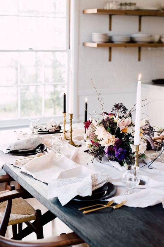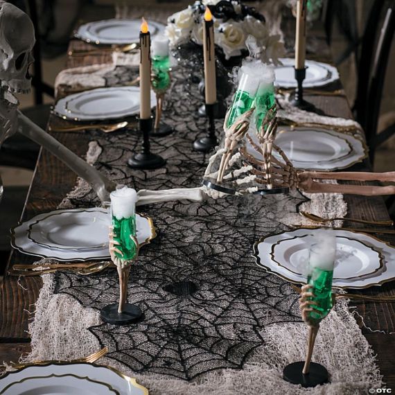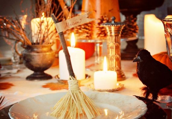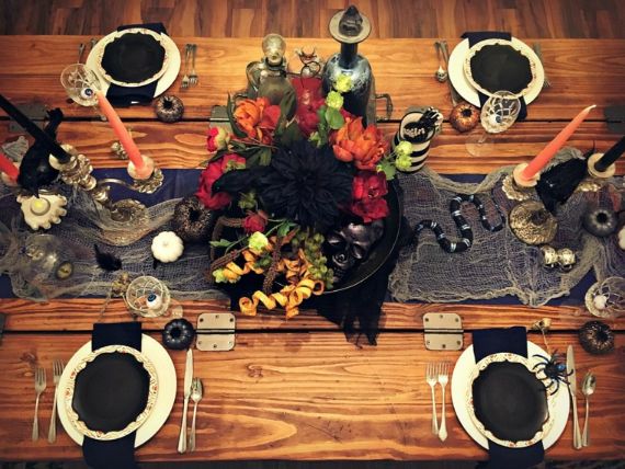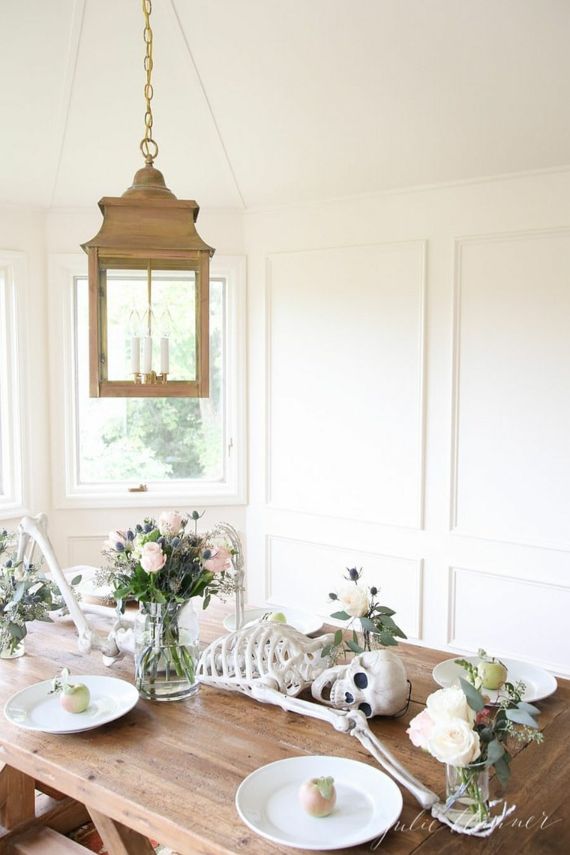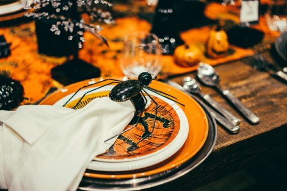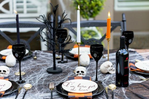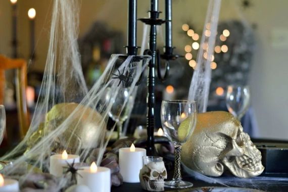 It would be fun to have a “Halloween-inspired look” just by using colors like white, black, and orange for the table. At some point minor tweaks using only white and gold works well and will serve well beyond Halloween. Soft lighting and a hint of red in the mix helps creating a Halloween-themed space and elevates the visual appeal of the dining room which will impress your guests.