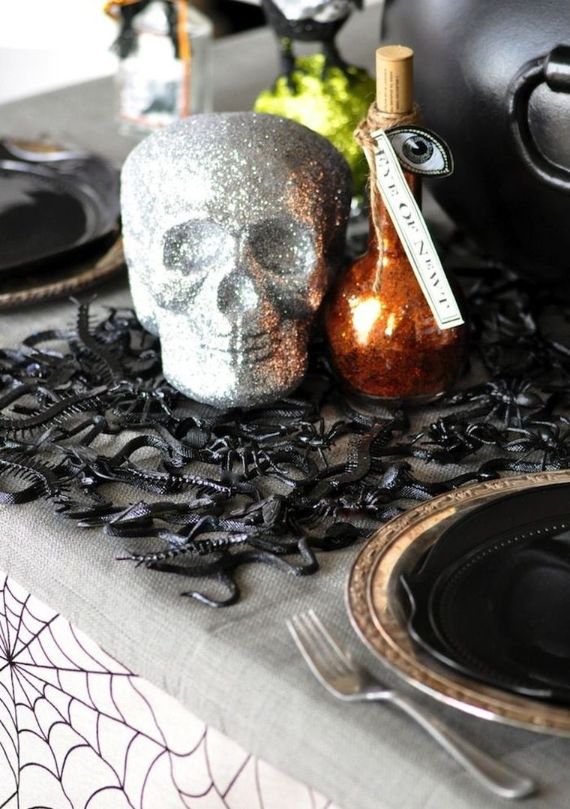 Skulls and skeletons seem to be one popular trend this season as skulls give Halloween its accent creepy look and is a fun option that’s all the rage too. Then there’s the usual lining up with decorative pumpkins, black skulls with candles, and spooky skeletons and some dark branches. Halloweens attributes and decoration of the dining room are equally different. You can set the table for this holiday with many options. These decoration ideas are of unique wacky styles, colors, patterns and themes.