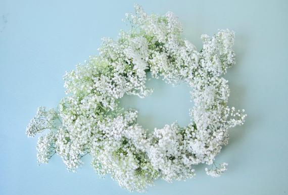 - Baby’s Breath wreath: mainly this type of flowers is used as fillers. These blooms will create a stunning, cohesive design providing a light and airy appearance, softening the overall look.