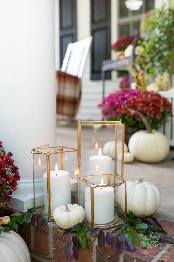 - Add Lanterns or Candles: put lanterns or fall candles in your entryway among your pumpkins.