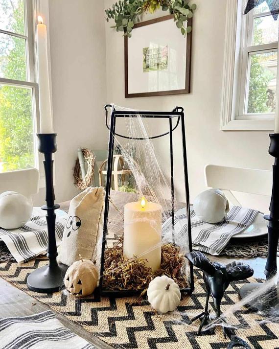 - Accentuate with lighting: Use white lampshades with warm lighting or lanterns to create a cozy ambiance that chilly fall days darken.