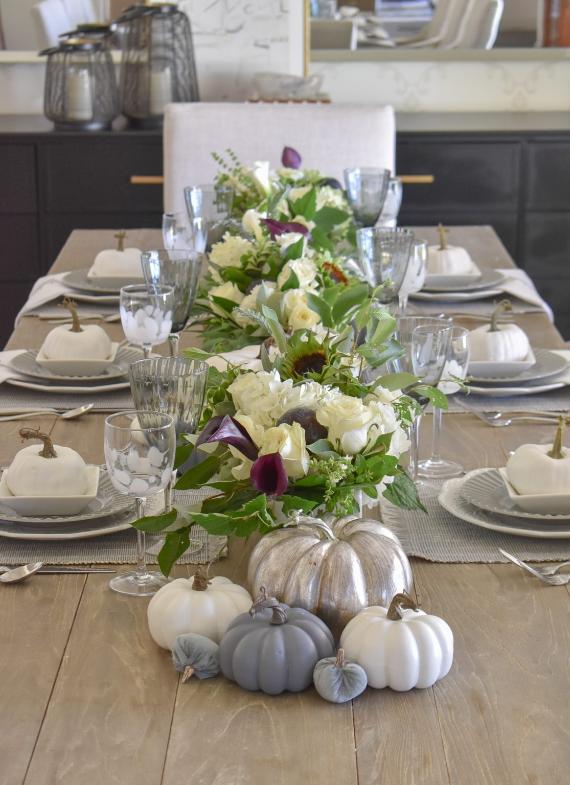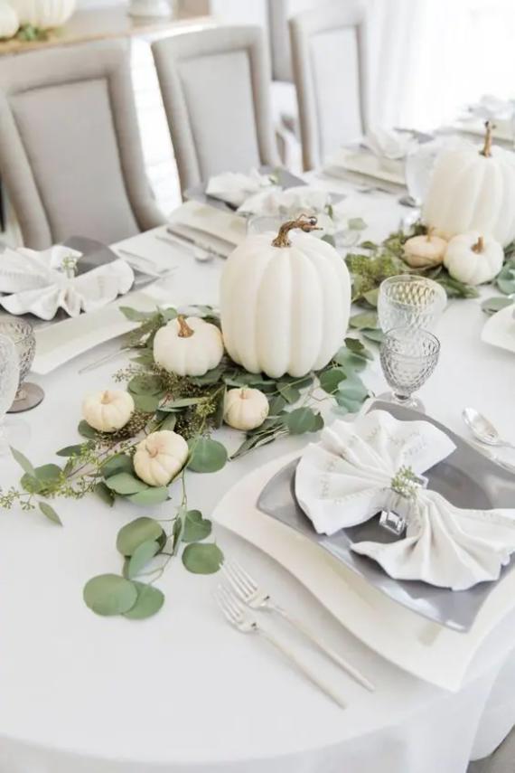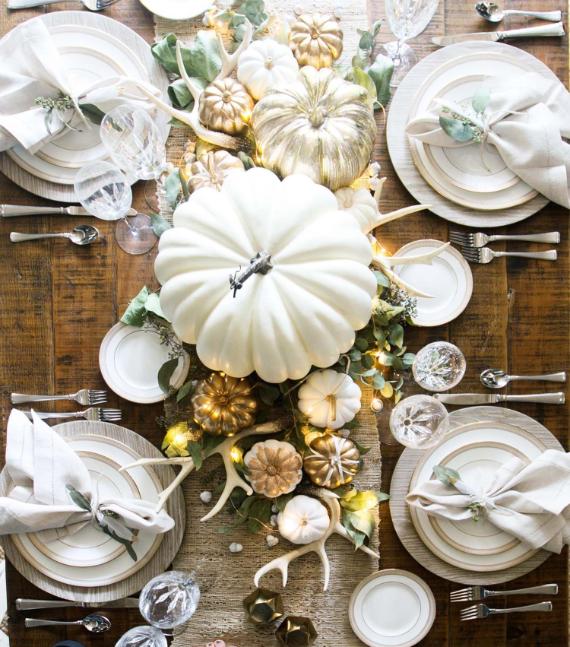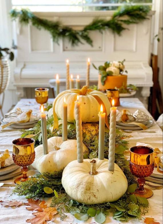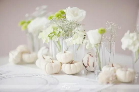 White centerpieces are easily blended with any color and tone of autumn to create a bunch of different looks that makes your table pop.