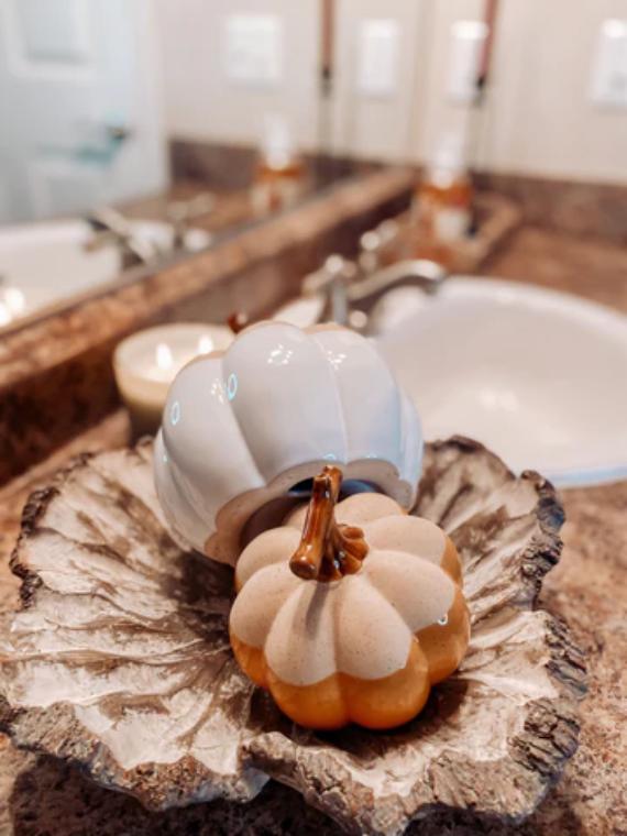 Fall décor typically finds its place on front doors, living rooms dining tables, and fireplace mantels, but bathrooms can also have the benefit from a seasonal refreshing. Offer a serene and elegant sanctuary to your bathroom with white Fall bathroom Décor. Whether you’re primary bathroom, or guest bath, these spaces are perfect candidates for a cozy makeover.