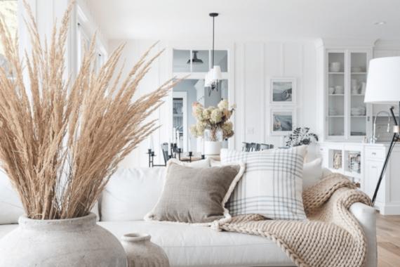 Adding coziness with white throws and cushions to your living room for fall is the easiest way to bring the warmth of Fall into your home. It is by adding white throws and cushions into your living spaces.