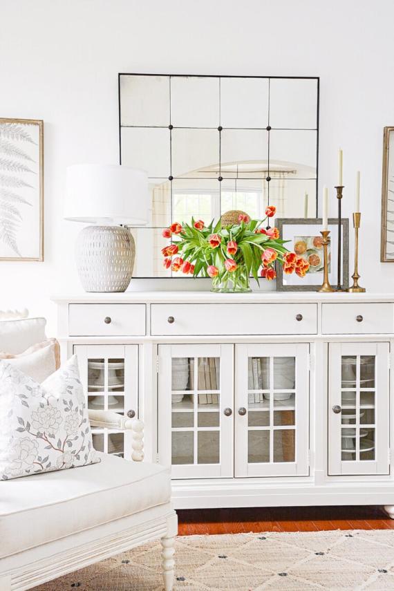 - Balance with figurines: Add white figurines on shelves or beside vases to create the perfect mix that adds a touch of personality.