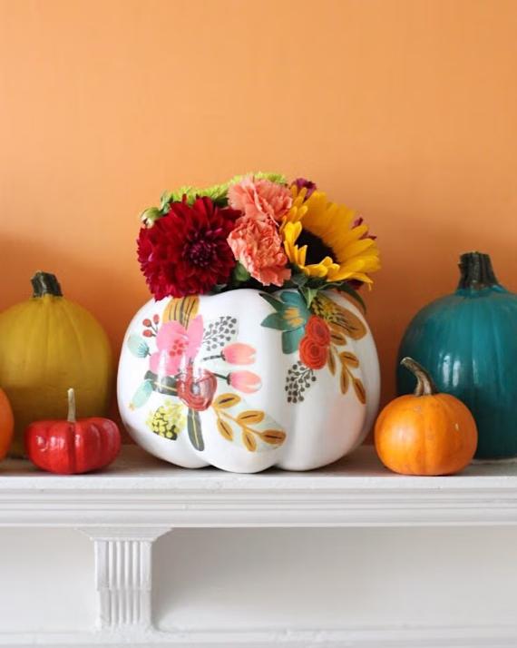 - DIY white pumpkin centerpiece: Paint real or faux pumpkins in varying shades of white to make a White Pumpkin Floral Centerpiece, a contemporary fall centerpiece idea with white pumpkins, or pairing the white pumpkins with green faux eucalyptus stems and candles for perfect table décor.