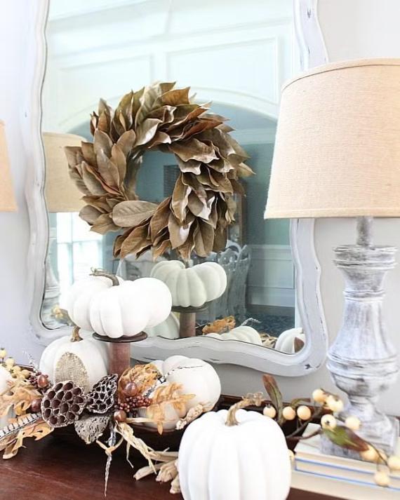 - White fall décor has Symbolic Significance as it is associated with purity, peace, and new beginnings, thus elevating the look of your space.