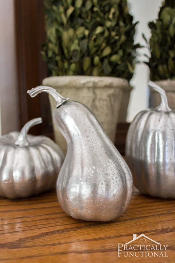 Another technique to turn foam pumpkins into mercury glass pumpkins. How to make your own DIY faux mercury glass pumpkins…these mercury glass pumpkin makeover images are linked to tutorial DIY mercury glass pumpkins.