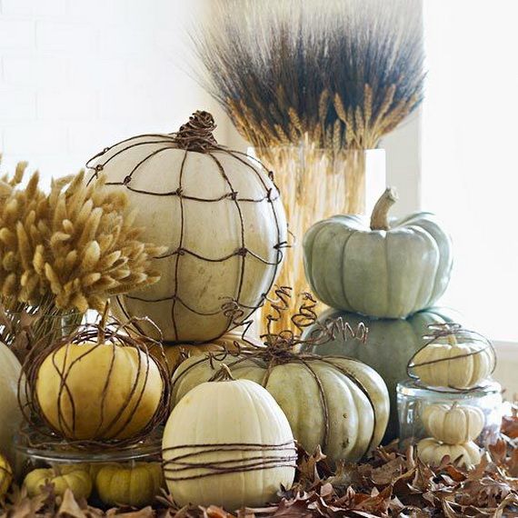 Dozens of patterns and design ideas; are presented as centerpieces for your dining table and their unusual colors will look fantastic atop a mantel, shelves or stacked in a large glass vase or bowl on a coffee table to achieve a cozy rustic touch – pumpkins are perfect as a fall décor piece.