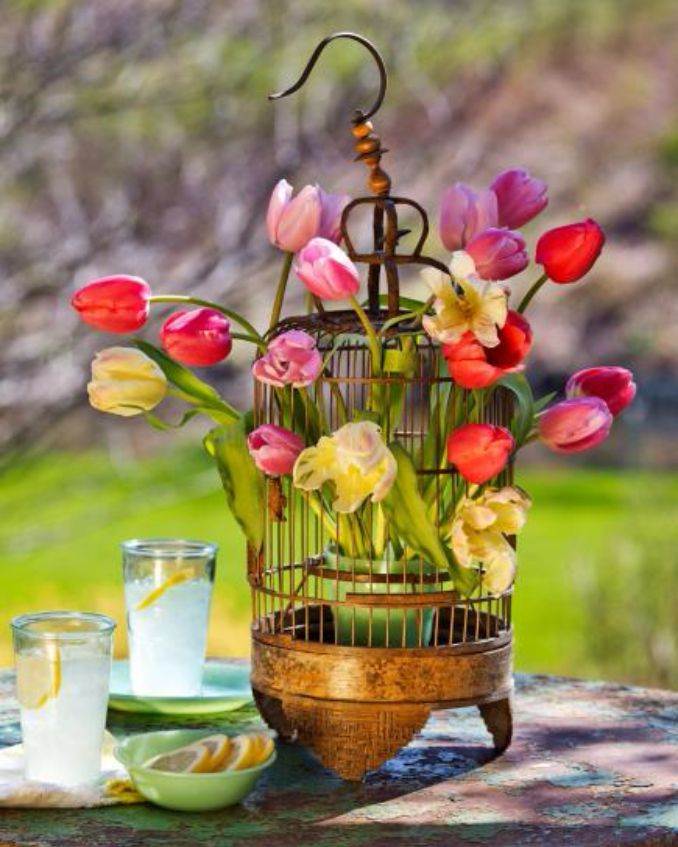 Add pretty Spring flower arrangement to refresh your home for centerpieces, table settings, door decorations and more. Spring flowers in tenderly soft and brightly rich colors look so lovely in every room and in every decoration. Home decorating with flowers in your space evokes deep feelings and add gorgeous, fresh and festive look that can improve your mood. Here we present you some amazing collection of great ideas for spring decorating with stunning flower arrangements, attractive containers, creative flower pots and vases for beautification of your home.
