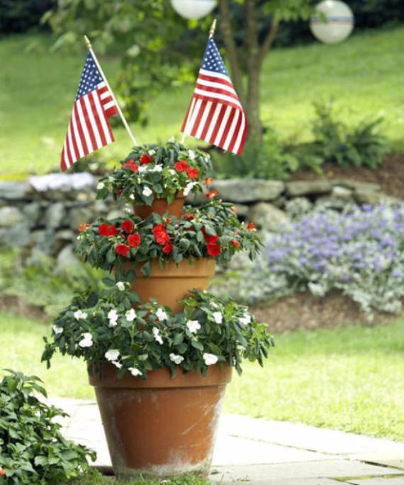 This cute and bright flower pot with stars + stripes makes a great 4th of July decoration for your porch. Another idea is to play with flower colors… red, white and blue an amazing collection.