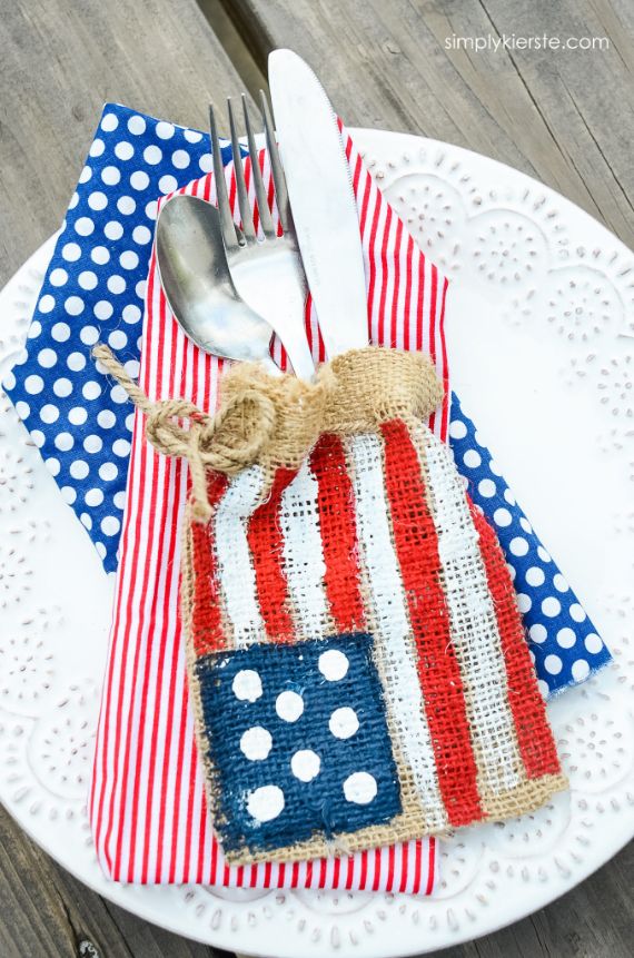 A 4th of July feast will be all the more glorious with these simple and inexpensive home USA flag America patriotic silverware sets. They’re perfect for your 4th of July or Memorial Day table display!