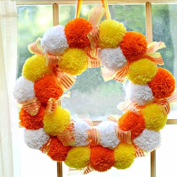 Nothing says “Welcome to our Home” better than a DIY project that of a tricolor wreath that is both fun for Fall and Happy for Halloween. When the trick-or-treaters come knocking, they’ll find their favorite Halloween candy welcoming their trick-or-treats. Candy Corn Wreath sure looks cute on a fall door decoration or front windows …it’s the perfect touch for the occasion Enjoy the clever Candy Corn Wreath which are Bright and colorful in step by step tutorial attached below.