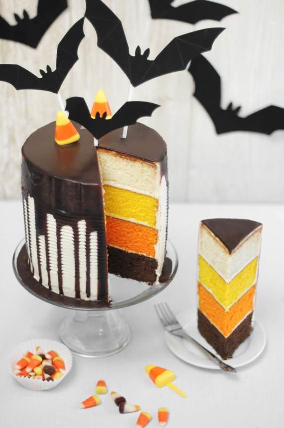 Sure, Candy corn is an iconic Halloween treat, but weirdly, some people don’t like the taste of those little tricoloured Candy Corn, so we have an alternative delightfully dessert that combine two things for those people who prefer cake and cupcakes. Yummy candy corn cakes and cupcakes with Yellow, Orange and White are easy-to-make and super delicious that you won’t have enough to decorate and create fun Halloween treat patterns with it.the candy corn cakes and cupcakes are decorated with real candy corn or to resemble candy corn in colors.