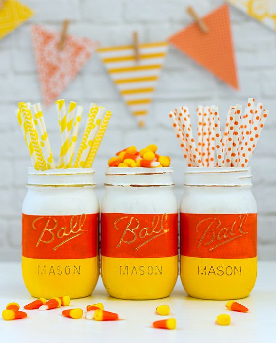 Candy Corn Jar can go for cute or creepy. Roundup some of clever ideas with old bottles and jars to get into the Halloween spirit. Candy Corn Jar are easy to make and only need a few materials that are already around in the house. Creative DIY Mason Jar are fun diy Halloween decoration or centerpiece for fall decor and treats for October. Because they are super kid-friendly you’ve got awsome Halloween craft ideas to celebrate the season.