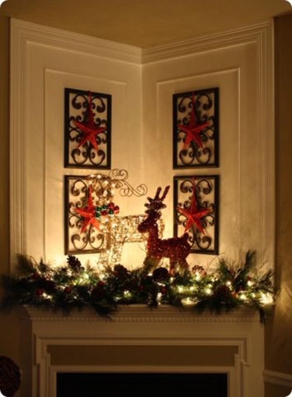 As Christmas decoration for wall- mounted fireplace and mantel are decked out so easy in the holiday spirit. It accepts all Christmas decorative materials of various style. This increasingly popular interior fireplace design creates an attractive focal point in the room. To decorate a fireplace to be an eye-catching use Christmas stocking holder, garlands, candles, warm twinkling lights, DIY wreath and tiny villages. In fact, any Christmas decorative items from floor to ceiling and all ideas of Christmas touches would, approve Christmas mantel look. Sometimes flowers pots, photographs in frames, figurines may be placed on the mantel. Above the fireplace, you can hang a picture, mirror in a beautiful frame, art, Television, Clock, Wreath, Chalkboard all which is stylish and practical.