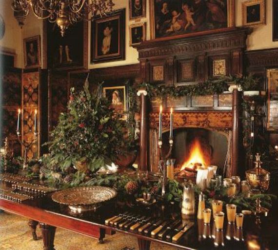English fireplaces are decorated by a vintage Christmas mantel décor which is a similar principle the classic ones. Vintage Christmas mantel are characterized by the right angles, strict lines prevail, restraint and a certain stiffness that reflects the characteristic features of the style – in their design.