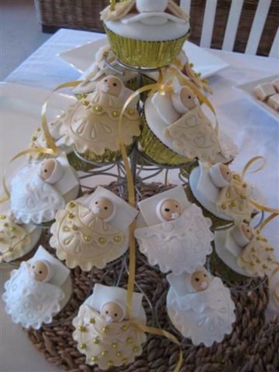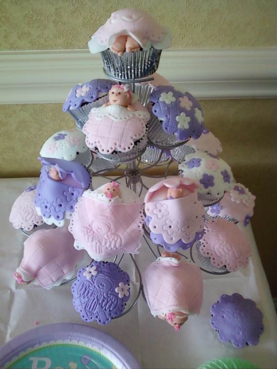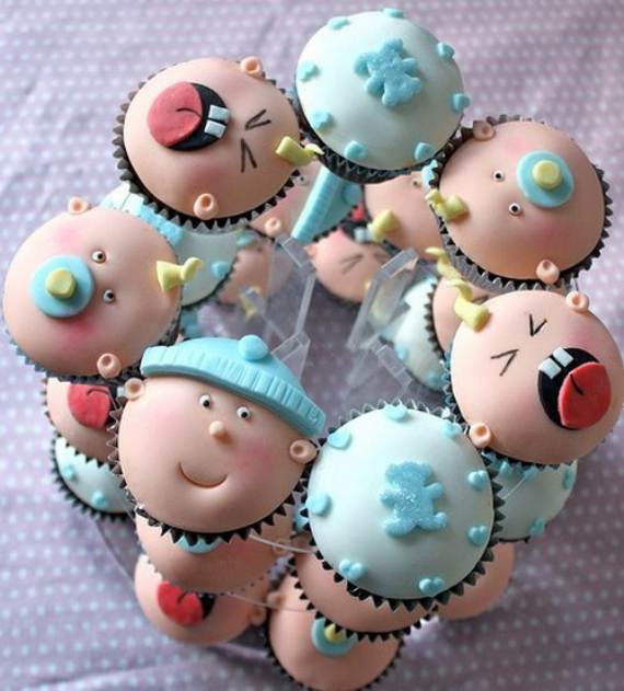 Many occasions come through and we all actually need an excuse to decorate and eat delicious cupcake baby showers, birthdays, holidays, parties and weddings to name a few. Cupcakes in general are unique in shape as they are small in size encouraging us to celebrate the small things too…Yes newborns are reasons enough for cake and pretties. Enjoy mixing and matching of some baby shower cupcake designs to create your own little scenes having the perfect look and enjoy some yummy treats in your party! You can also get inspired with other cupcake for other occasions using some of our past articles 45 Spring Cake and Cupcake Decorating Ideas and Winnie the Pooh Cake and Cupcakes Decorating Ideas to help get you started.
