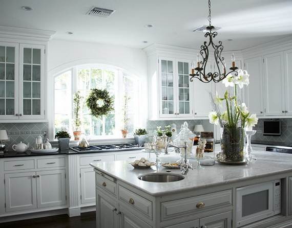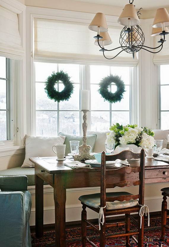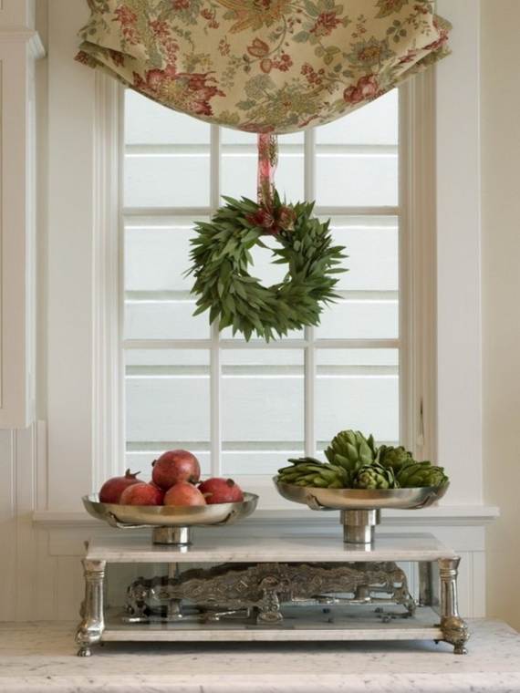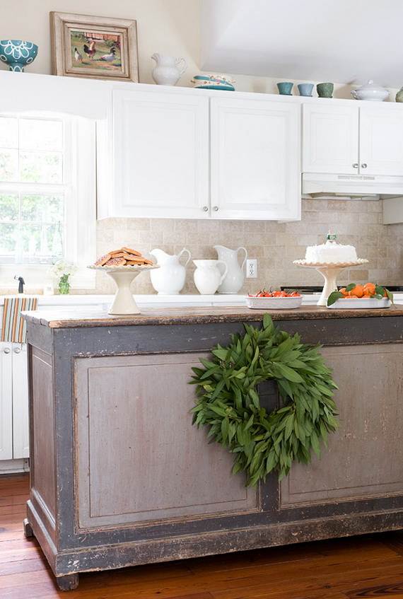 Spruce it up and add a festive glamour to your kitchen by hanging a wreath on your window, on the door, on kitchen wall, by the counter , cabinetry or hung from the ceiling- anywhere to spread the cheer to undecorated room. Wreaths look great and are a fantastic decor just like Christmas trees beside it won’t take up precious space. Kitchen wreaths are the easiest decorations for Christmas and are much more practical than the trees they won’t take up space. They can be adapted mostly anywhere; vertically and horizontally are eye-catching wherever it is hung. They can be found in all sizes and styles depend on the size and the style of your kitchen. Christmas wreaths is cute enough to change the space into a holiday precious space and add instant Christmas cheer.