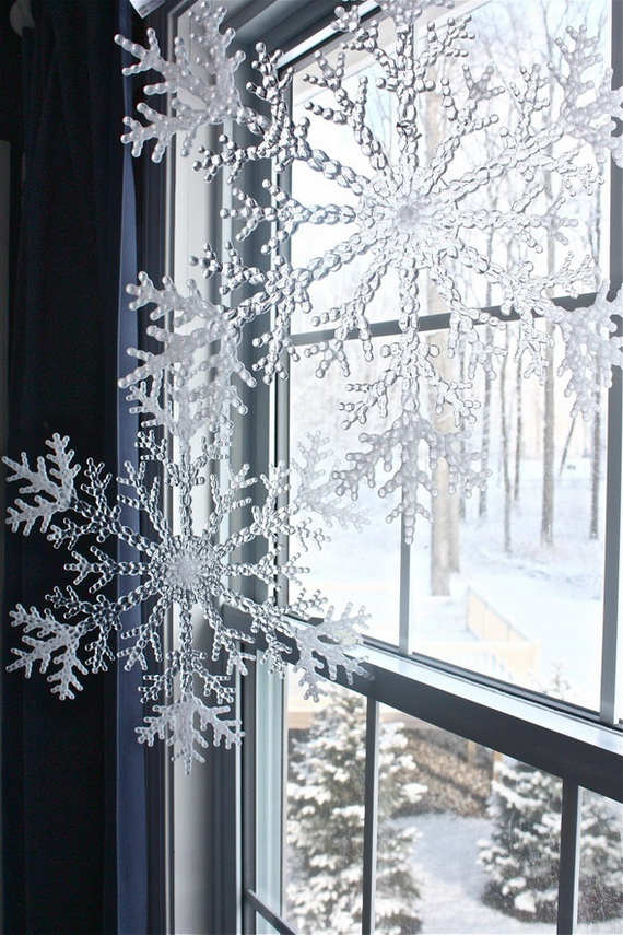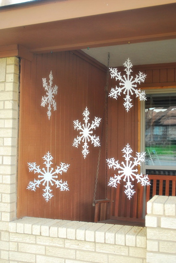 a combination of snowflake ornaments and white lights should be beautiful Christmas decoration both the interior and the exterior. The soft glow is visible from afar, eye-catching, attracts and adjusts to festive fun. Glowing snowflakes will create an enchanting atmosphere for all winter holidays.
