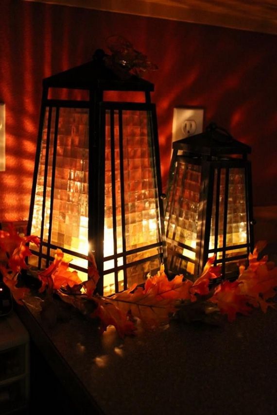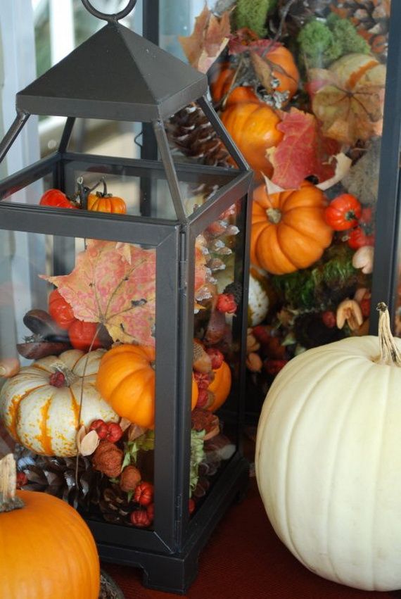 Lanterns add coziness to this natural seasonal; it makes the garden look much more alive and gives a romantic beauty, as they bring a rustic feel. Much stuff can be used as fall lanterns not just the traditional fall lantern with a candle we used for centuries… like: pumpkins, flowers, leave, nuts, jars, bowels and so on. Have a look at the ideas below and enjoy!