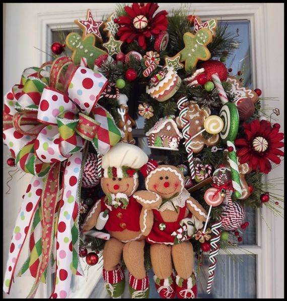 Gingerbread wreaths are another awesome decorating idea. Arrange your gingerbread items in a circular shape to create extraordinary wreath that fits the occasion. Gingerbread wreath can be hanged outside or inside, on doors or windows, cupboards, on the chairs and on the door handles as where ever they go they create a special atmosphere.