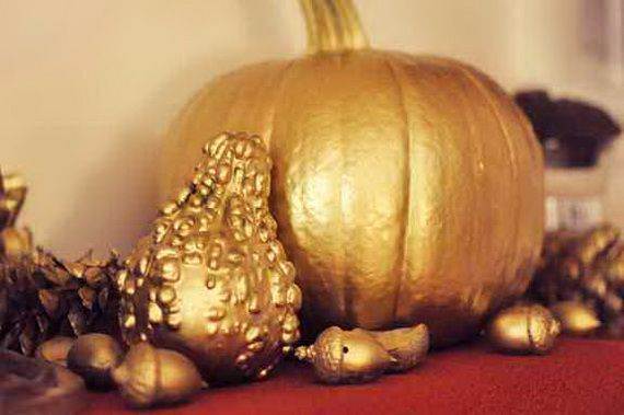 The color gold is the color of extravagance; it is the ultimate color to symbolize wealth and class. It always reflects the privilege of celebrities and royalty. Paying attention to its meaning gold will set the theme or mood to keep your Autumn/ Halloween holiday Decor up high. Discover how the classy trend of Gold Halloween Decoration that can be stunning as sunrise heralds to add a certain expression feelings for a warmer autumn when exploring new decoration designs just in time for Halloween. The color gold is a warm color that can be used either for bright cheerful fall decorations or somber dark Halloween decor. Pumpkins, Leaves, cones, acorns and all the symbolic items for fall season and Thanksgiving Day could be in an autumn’s Gold style “goldy looking” by using a spray or liquid paint, as Gold is a great decorating theme in autumn.