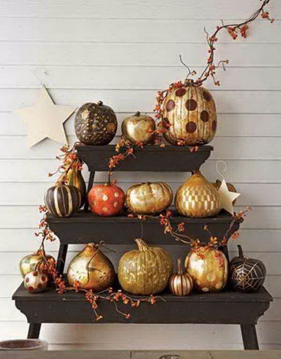 Gold Halloween Decoration … 50 Glorious DIY Autumn/ Halloween Decoration Ideas In Gold…Autumn is the most sweet and romantic time of the year. The sweet summer leisure days are nearly over and experiencing some cooler temperatures with the begging of autumn colors everywhere we start feeling the end of long hot days. We all have deep appreciation for fall and its annual holidays, decorating just seem to come with it. With its approaching and a lot of Nature’s gifts are already harvested so it is time to start thinking to nest our homes for the fall decorations.
