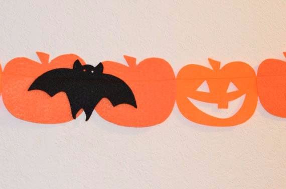 DIY Vintage Halloween Garland With Bats And Pumpkins;