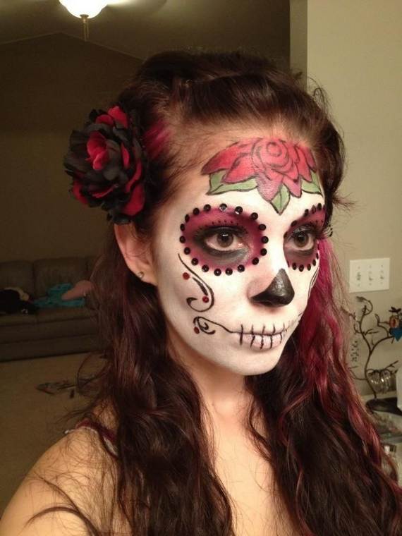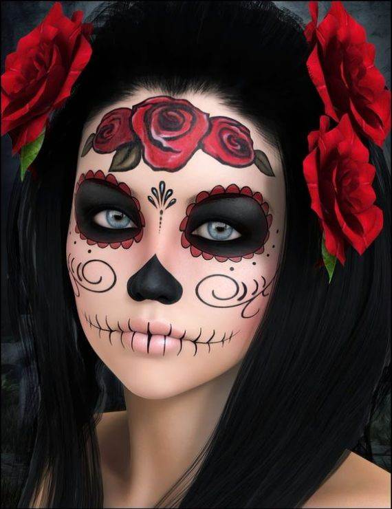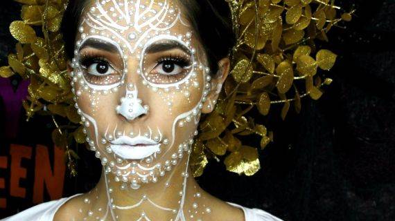 Day of the dead is that Mexican holiday and gained popularity over the last few years in use for Halloween and celebrated around the world and primarily in Mexico. Sugar skull makeup has become increasing more popular and a very hot Halloween makeup look. Sugar Skulls or Día de los Muertos celebrates the images of the skull and Calavera (skeleton) of elaborately designed with extravagant detail, while Halloween is not the same holiday but in some ways they are similar.
